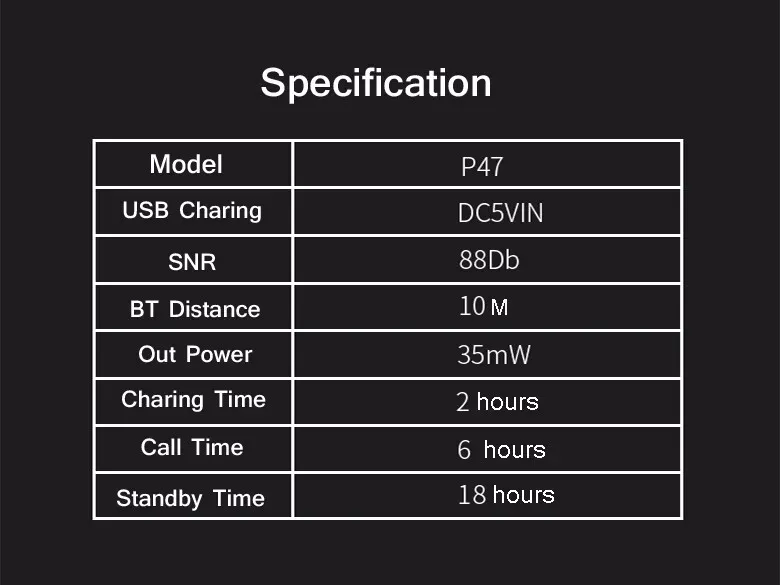 Specifications of P47 Wireless Headphones Bluetooth Stereo Head phone Foldable Headset with Wireless Built-in Mic compatible for all Android Devices, IOS and PC