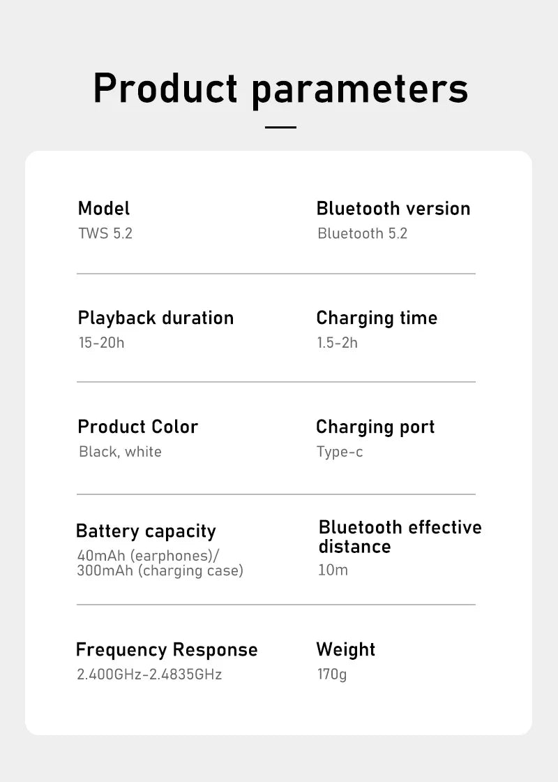 True Wireless Bluetooth Headphones:Seamless connectivity with True Wireless Bluetooth technology, ensuring a clutter-free audio experience.